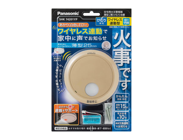 「けむり当番薄型2種」 (電池式・ワイヤレス連動子器・あかり付)(警報音・音声警報機能付)(和室色) SHK74201YP