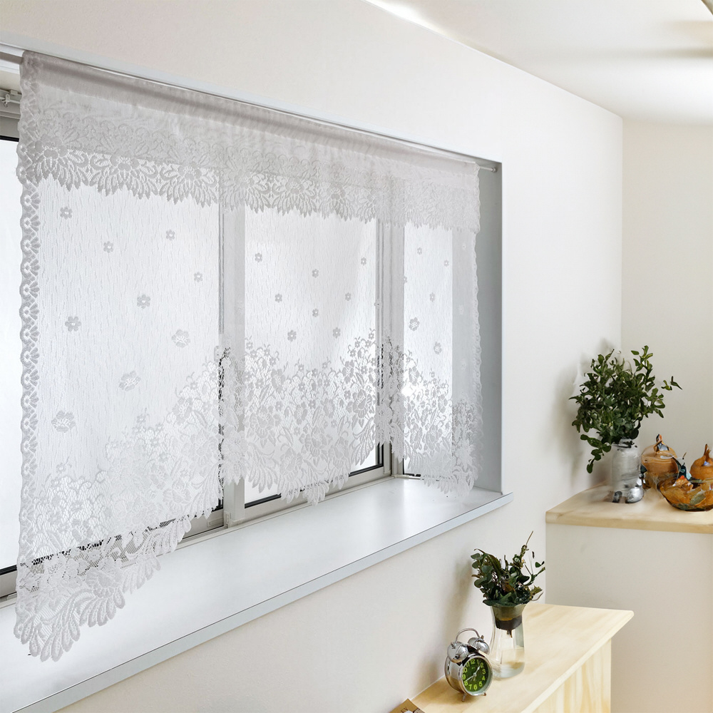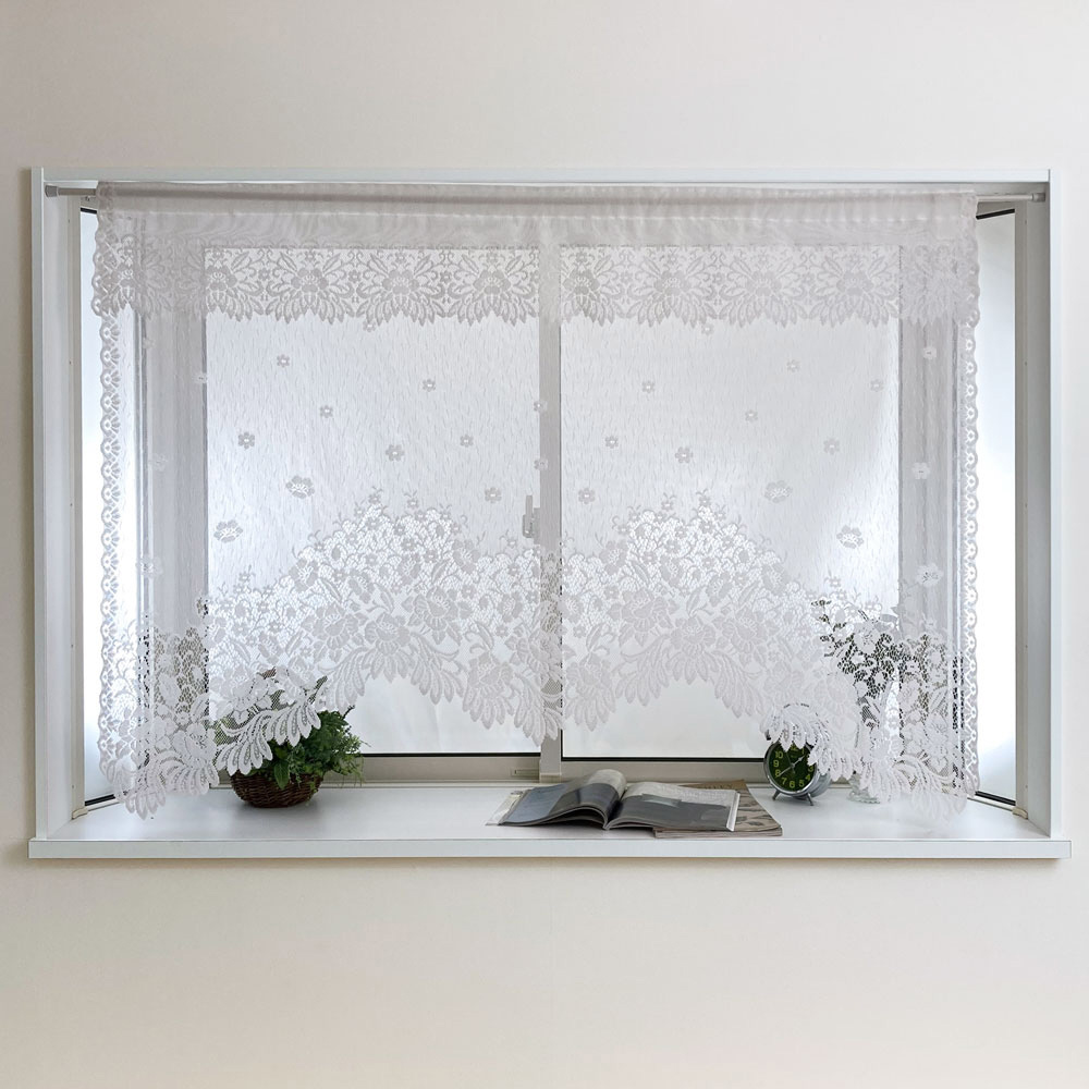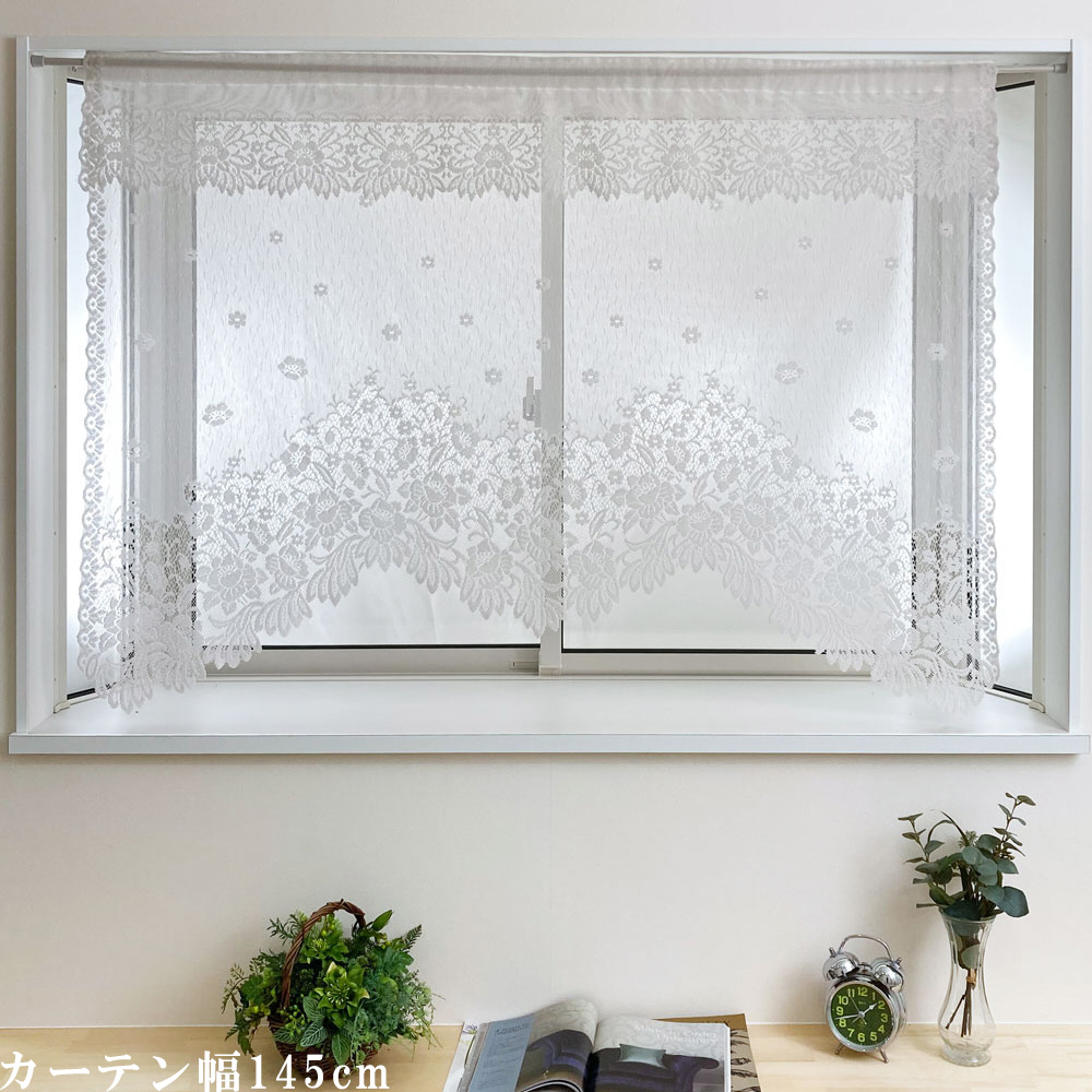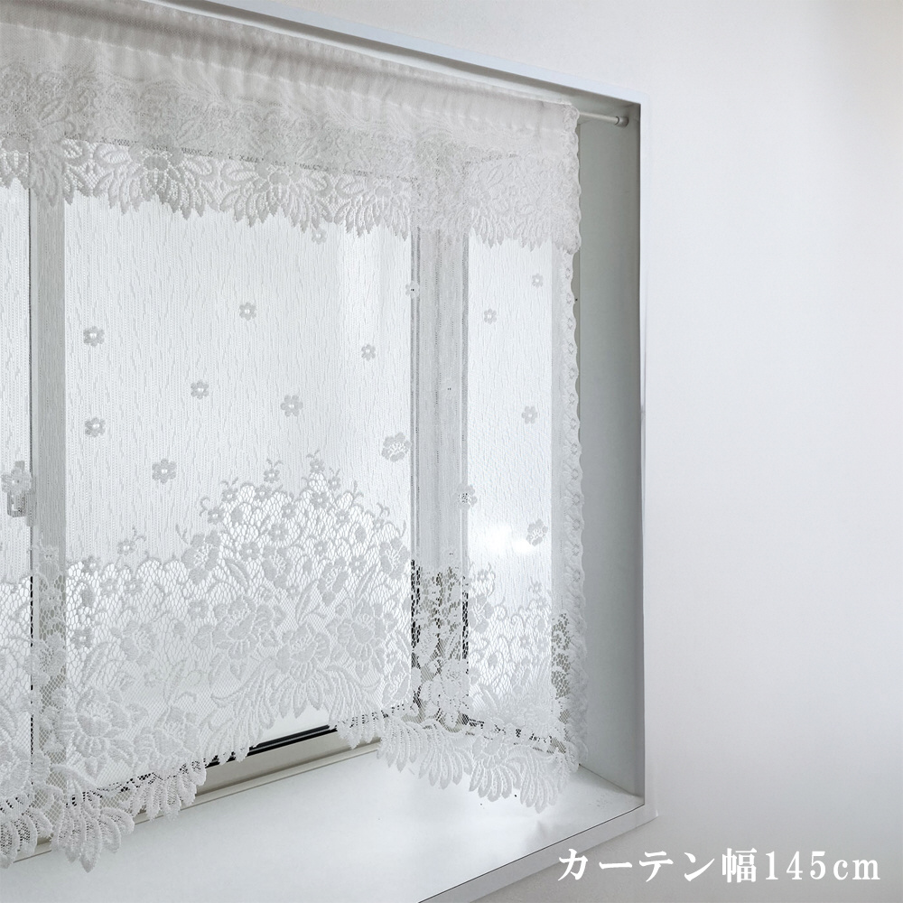 パイルレースデザインカーテン (フリル付き)[幅145×丈85cm] HACHIYA アイボリー 663198