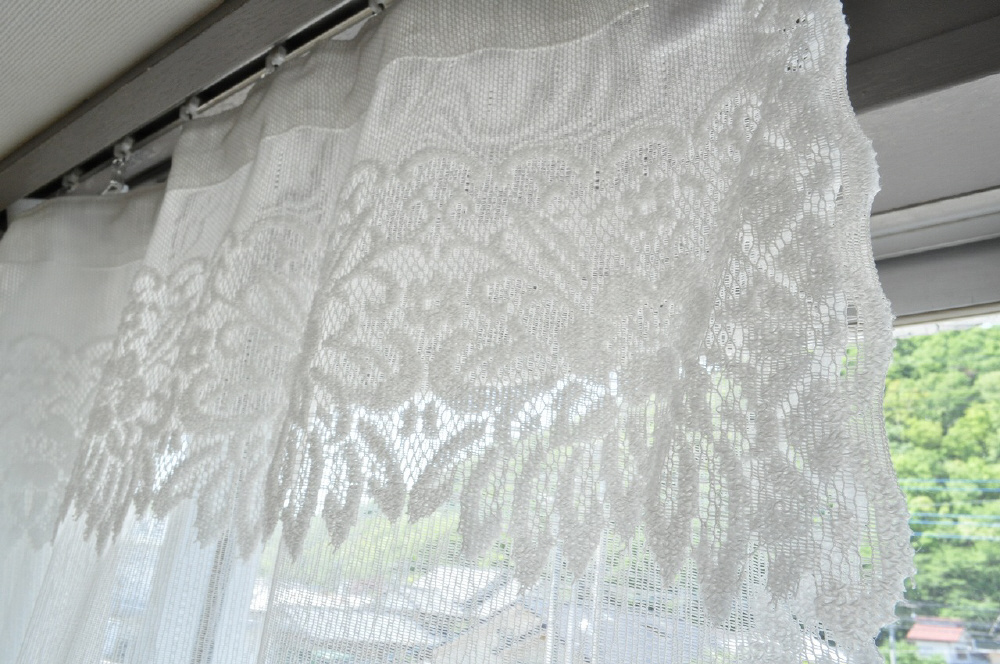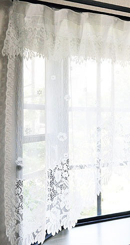 パイルレースデザインカーテン (フリル付き)[幅145×丈105cm] HACHIYA アイボリー 663204