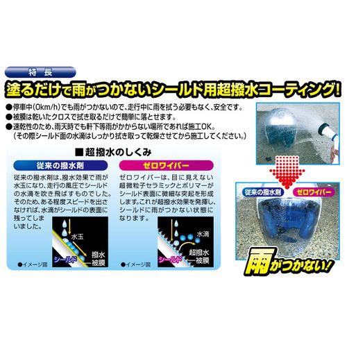 オートバイヘルメットシールド用超撥水剤。さっとぬるだけで雨が全くつかず視界クリア(霧雨もOK)5回分