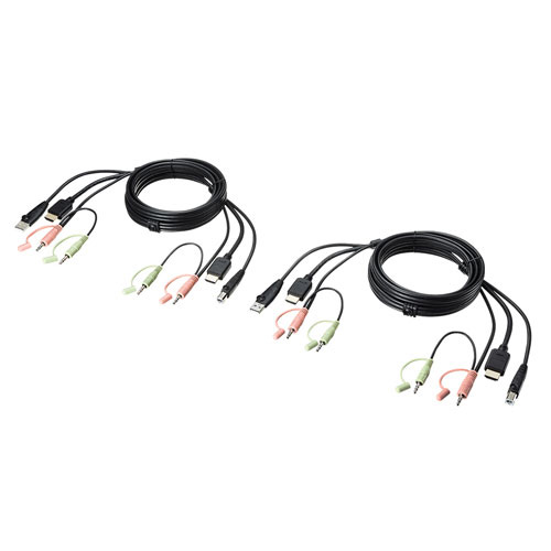 | 入力端子 | [PC側]ディスプレイ:HDMI(TypeA/メス)×2、キーボード・マウス・USB2.0ハブ:USB(TypeB/メス)×2、スピーカー:3.5mmステレオミニジャック×2、マイク:3.5mmステレオミニジャック×2 |