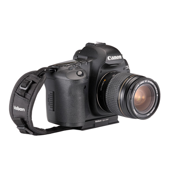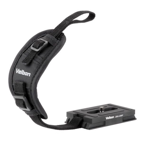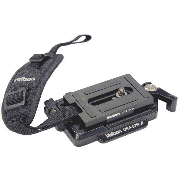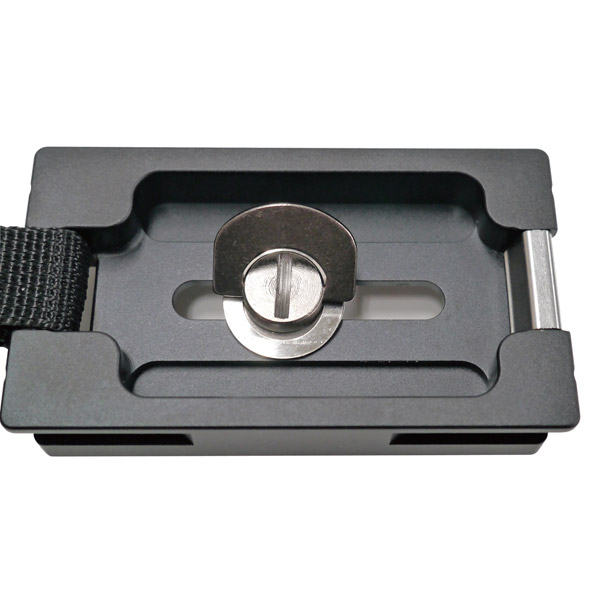 ハンドストラップ付きのクイックシュープレート。カメラのホールド感を高め、そのまま互換クイックシューのかわりに取り付けられます。