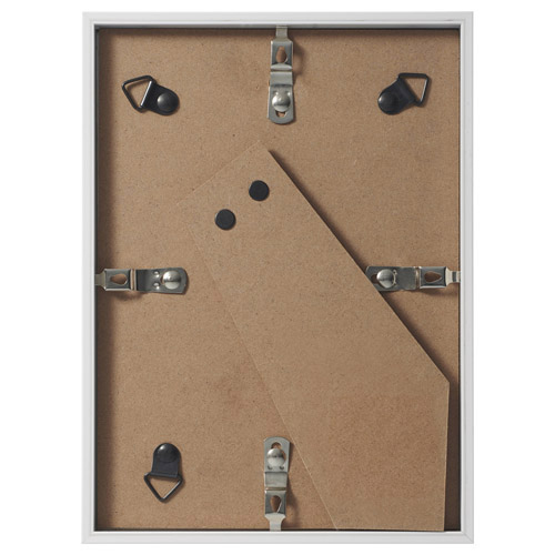 背板の金具と付属の吊りヒモを使って、吊り下げて飾ることができます。縦と横どちらの向きでも吊り下げられます。