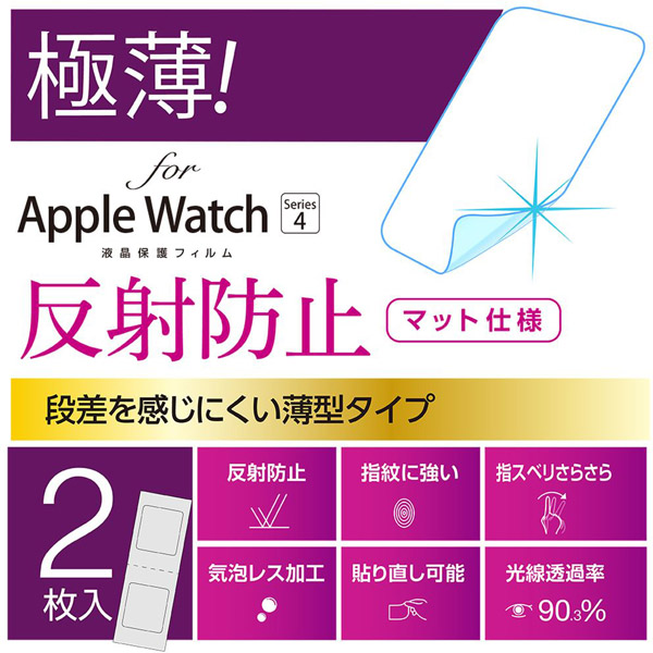 | 商品名 | AppleWatch 40mm Series4用 液晶保護フィルム 極薄 反射防止 SMWAW401FLGT 【864】 |