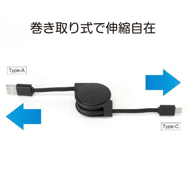 コンパクトに収納できて持ち運びに便利な、巻き取り式のType-Cケーブル。最長約90cmで、お好きな長さでご使用いただけます。
