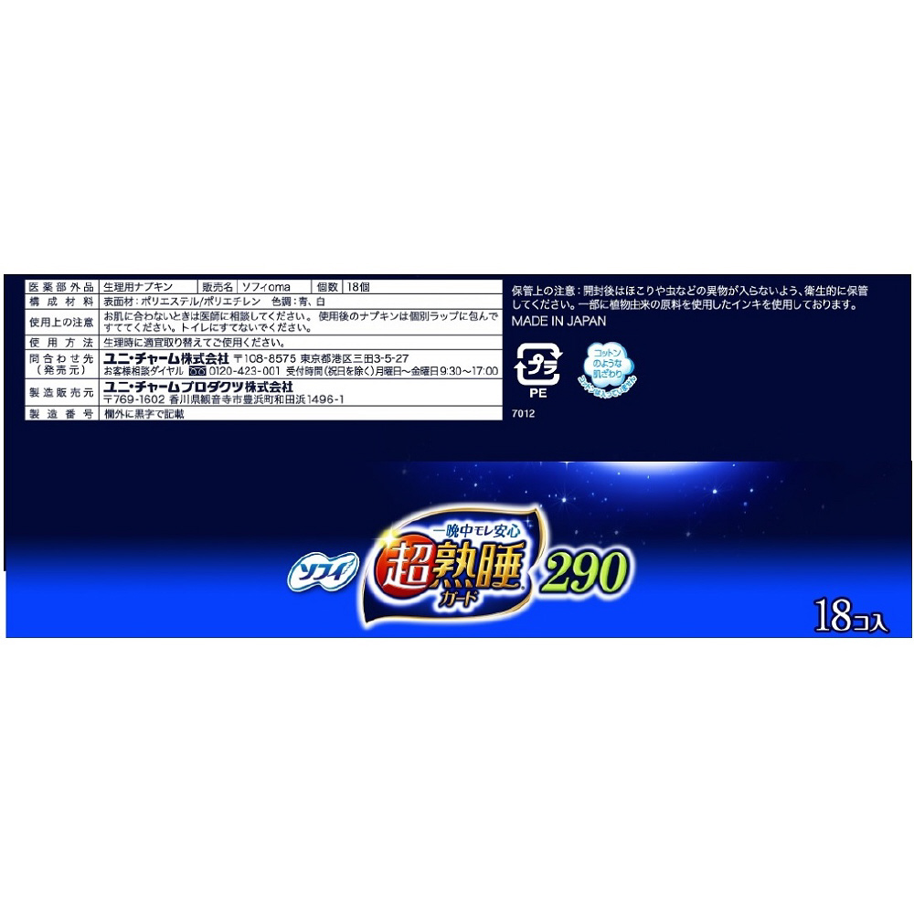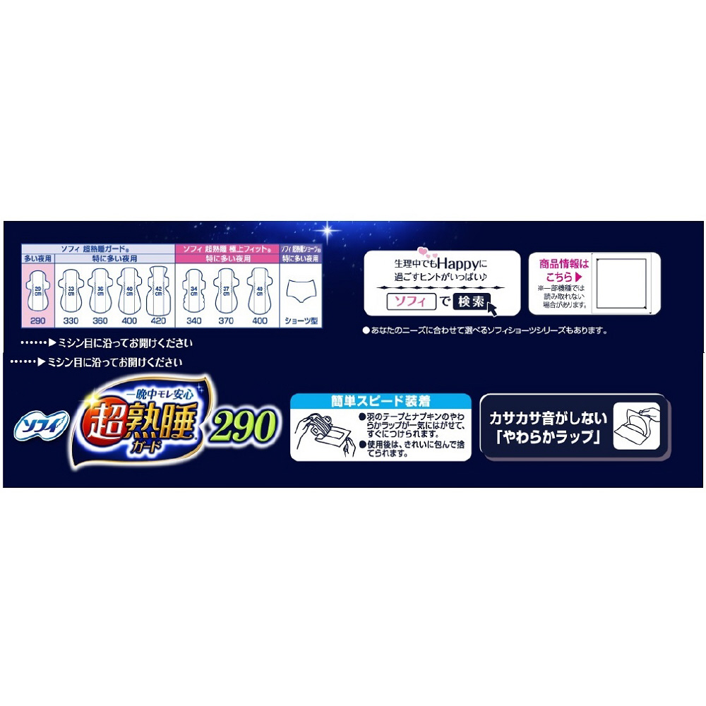 | 商品名 | ソフィ 超熟睡ガード 290 (多い夜用 羽つき 29cm 18枚) |