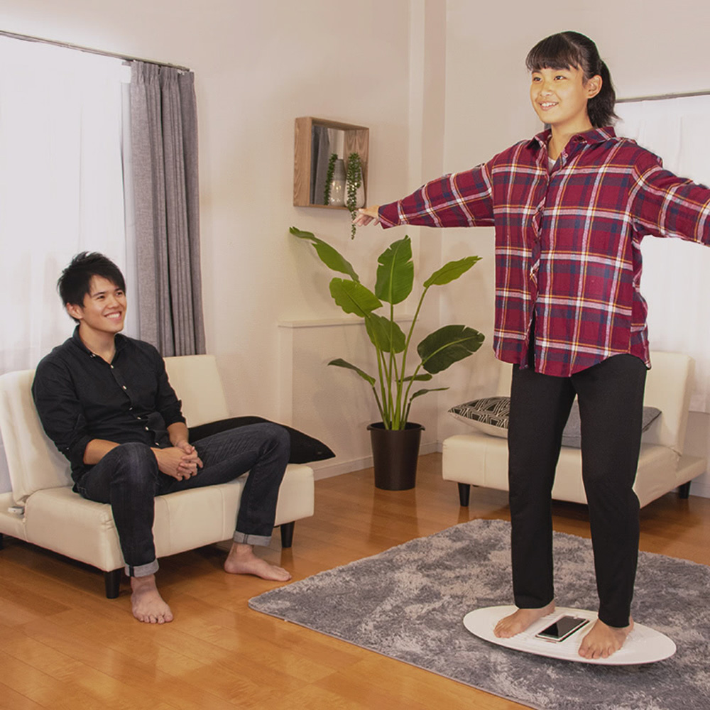 また、対応アプリをダウンロードすると、画面と音でバランス状態が確認できるため、ご家族や友人と楽しみながらゲーム感覚でトレーニングいただけます。