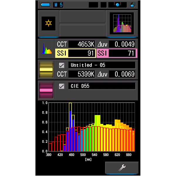 CRIの比較モードや分光グラフも搭載。写真、動画の撮影分野から産業分野まで幅広くご使用できます。