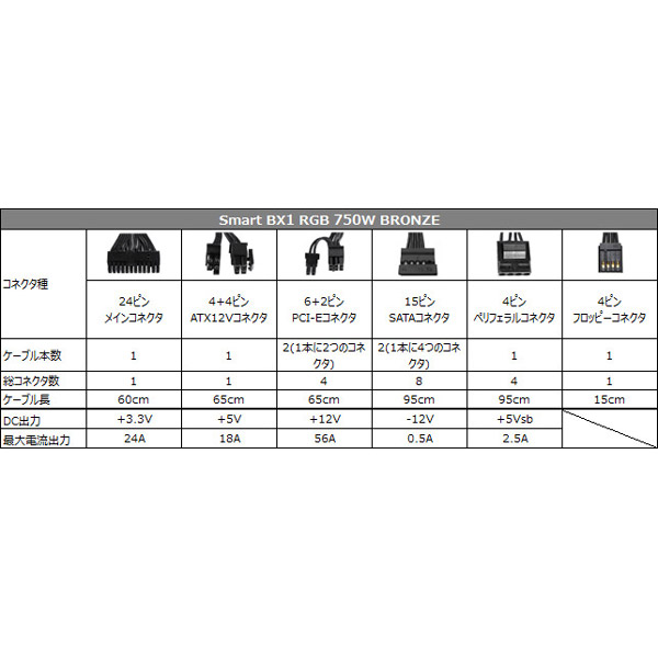 PC電源 Smart BX1 RGB 750W BRONZE PS-SPR-0750NHFABJ-1 [750W /ATX/EPS /Bronze]