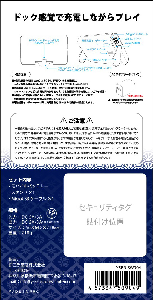Switch用モバイル充電バッテリースタンド [YSBR-SW904]