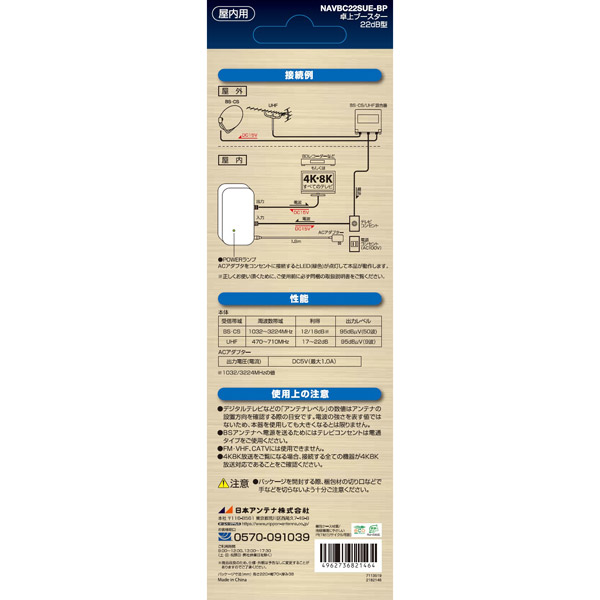 小型卓上型CS・BS/UHFブースター(屋内用) NAVBC22SUE-BP