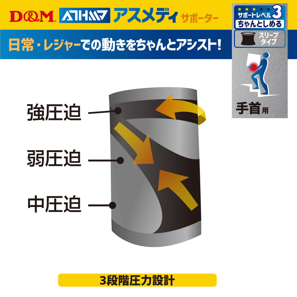 アスメディーサポーター サポートレベル3 ちゃんとしめる スリーブタイプ 手首(フリーサイズ:15〜18cm/9cm丈)#108311
