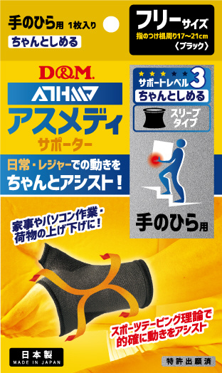 | 商品名 | アスメディーサポーター サポートレベル3 ちゃんとしめる スリーブタイプ 手の平(フリーサイズ:17〜21cm/16cm丈)#108328 |