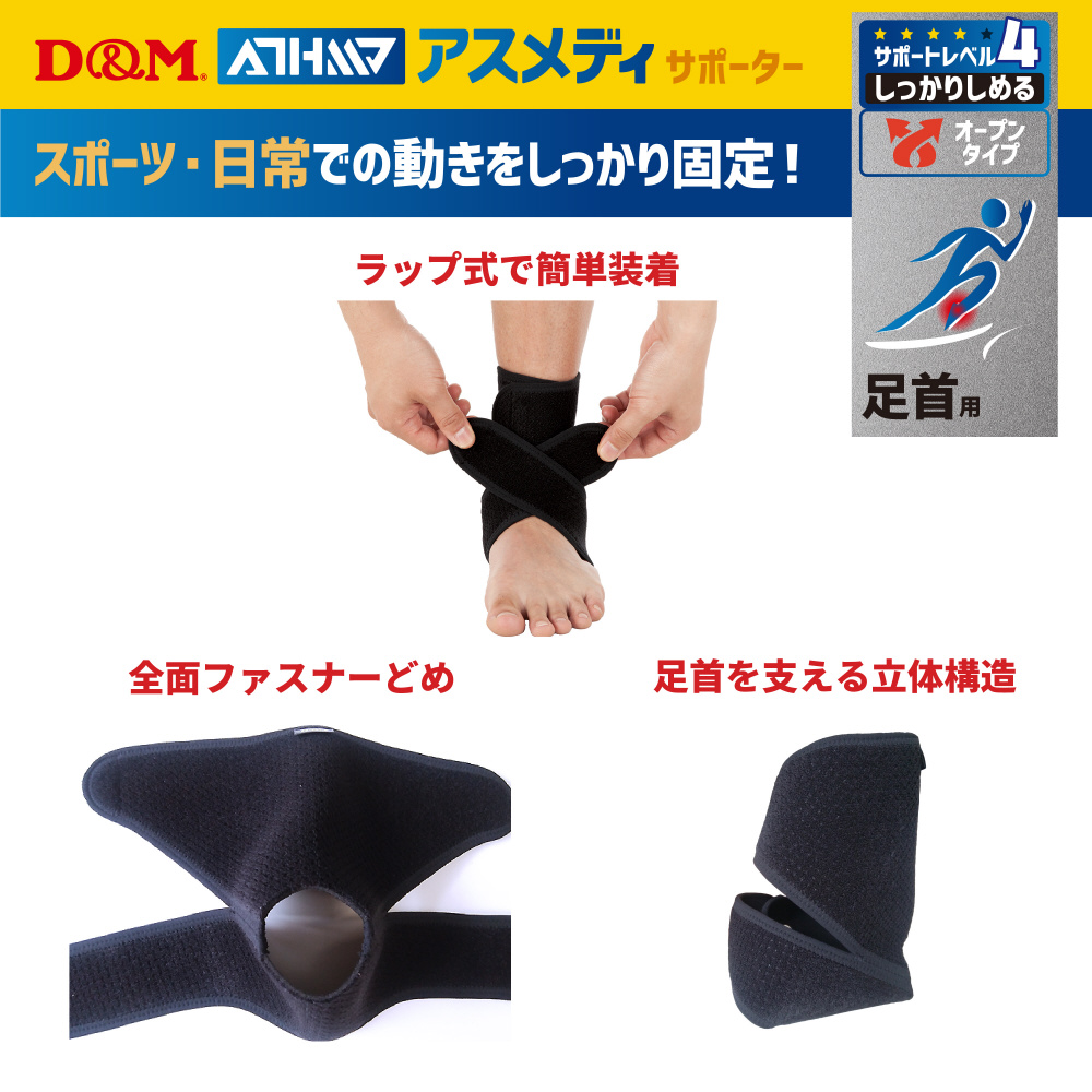 アスメディーサポーター サポートレベル4 しっかりしめる オープンタイプ 足首(サイズ:足首周り23〜29cm/丈19cm)#108663