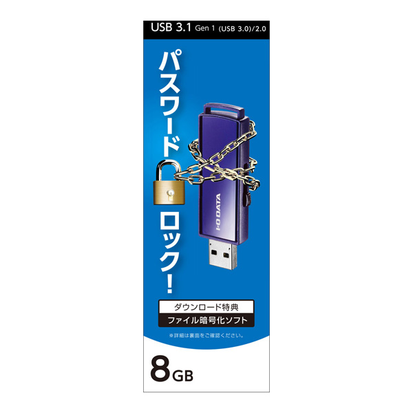 USB 3.1 Gen 1(USB 3.0)対応 セキュリティUSBメモリー 8GB EU3-PW/8GR