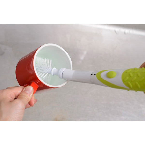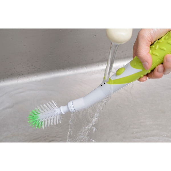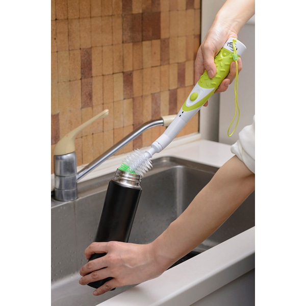 深いボトルやコップ、保存容器など、キッチン周りの様々なものを電動ブラシで素早く洗うことが出来ます。防水構造のため、食器用洗剤との併用ができます。軽量設計なのでどなたでも簡単に使えます。