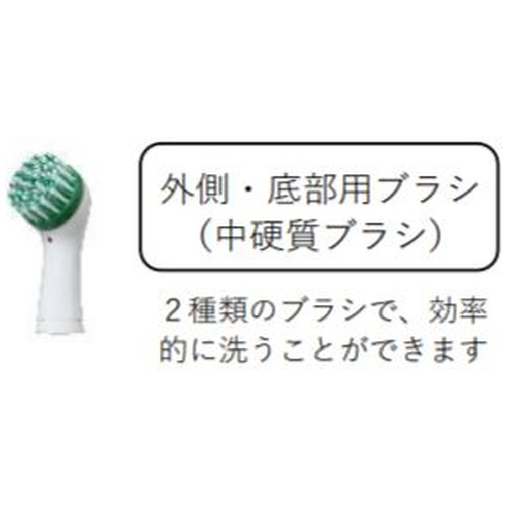 より汚れが目立つ外側や底部を洗浄するときは「外側・底部用ブラシ」に交換。ハードなブラシが裏側に詰まった汚れや、ソール部分のこびりついた汚れをしっかり落とします。