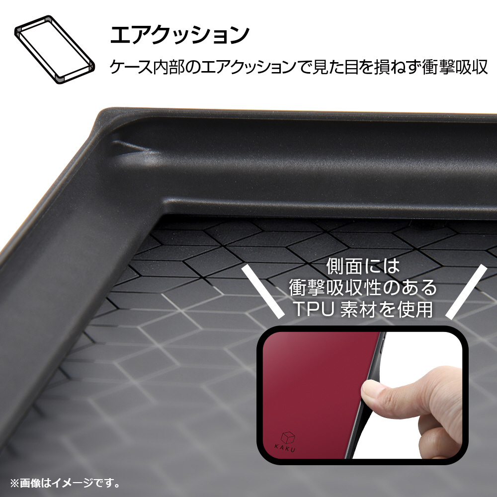 四角い形状が個性的な「KAKU」シリーズ。背面には鉛筆硬度9H、さらさらシルキータッチのマットガラスを使用。また、ケースの四つ角にはエアクッションが付いており、耐衝撃仕様になっています。