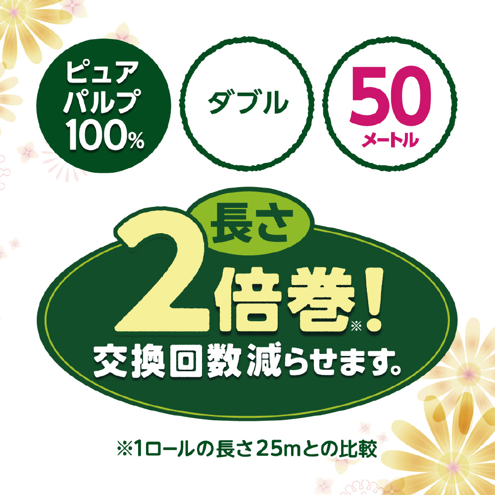 ・芯や包装フィルムを削減でき、エコにもつながります。・取替え回数が少なく便利です。・華やぐフローラルの香り。・吸水性に優れているので、温水洗浄トイレにも適しています。