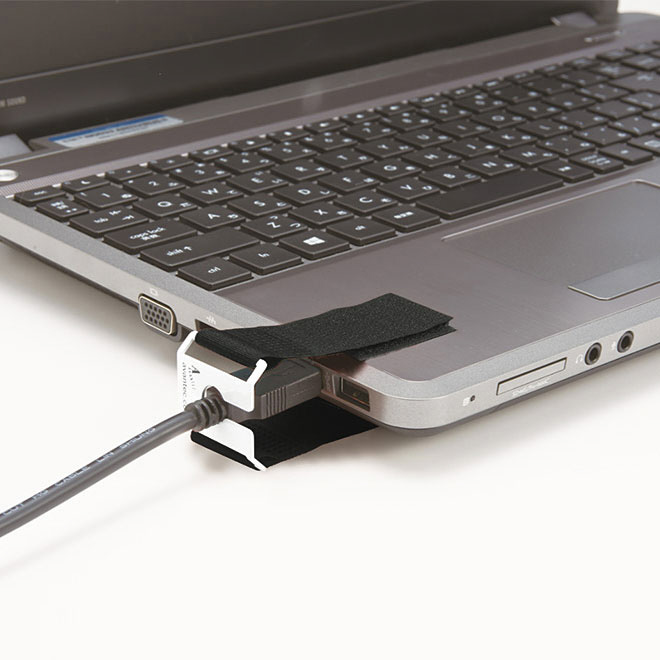 USBプラグが誤って抜けるのを防止します。