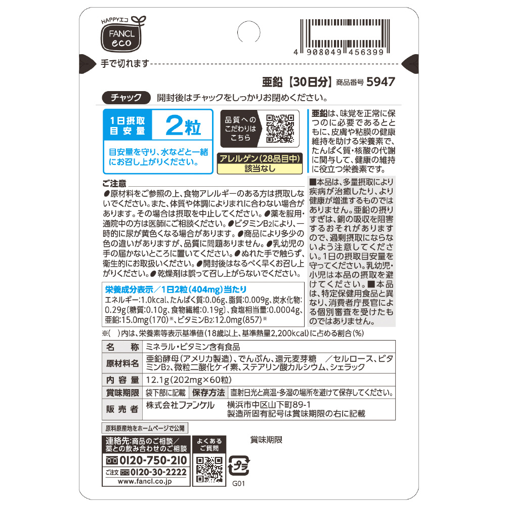 | 商品名 | ファンケル 亜鉛 30日分 |