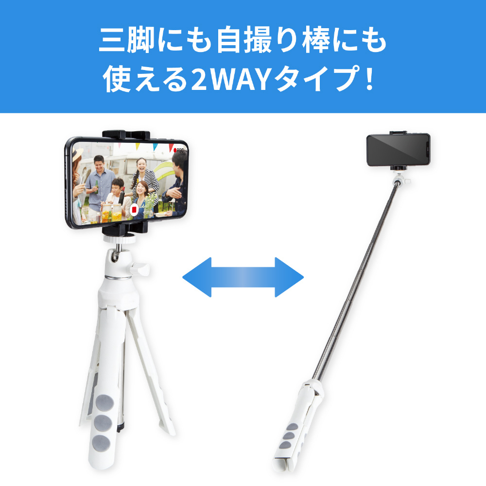 スマートフォン用/2way三脚/リモコン付/ホワイト P-STSRWH