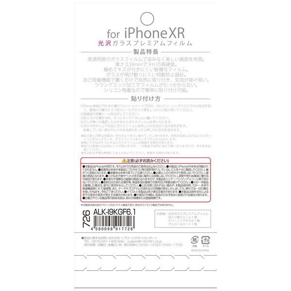 iPhoneXR光沢ガラスフィルム ALKI9KGF6.1