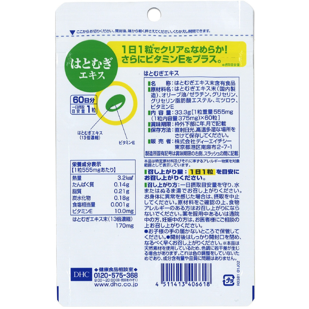 | 型番 | DHC60ニチハトムギエキス60ツブ |