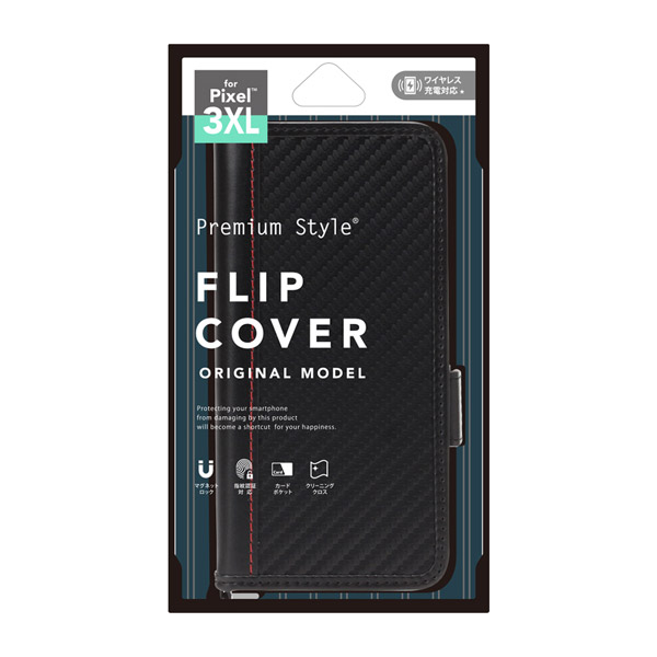 GooglePixel3XL用フリップカバー PG-PX3XLFP04BK カーボン調ブラック