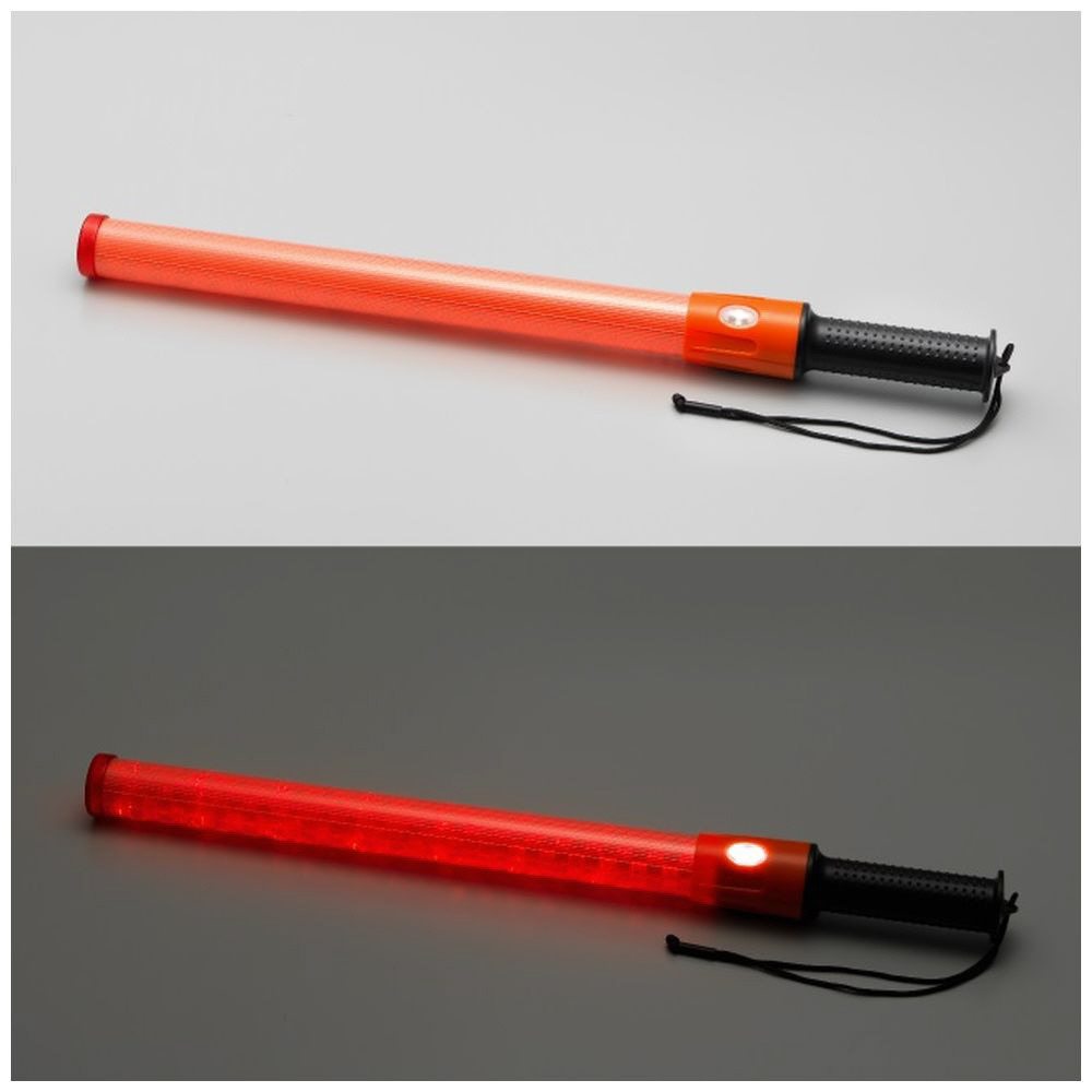 モーションセンサーによる自動切替式。点滅モードで振ると自動的に連続点灯状態になり、明確な誘導合図が送れます。反射シートは、広角反射性能の蛍光オレンジ色で薄暮時の視認性にも優れています。