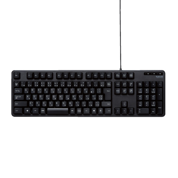 タイピングしやすい、JIS規格準拠の標準日本語配列を採用。 PCに挿すだけのカンタン接続で、すぐに使用することができる有線フルキーボード。