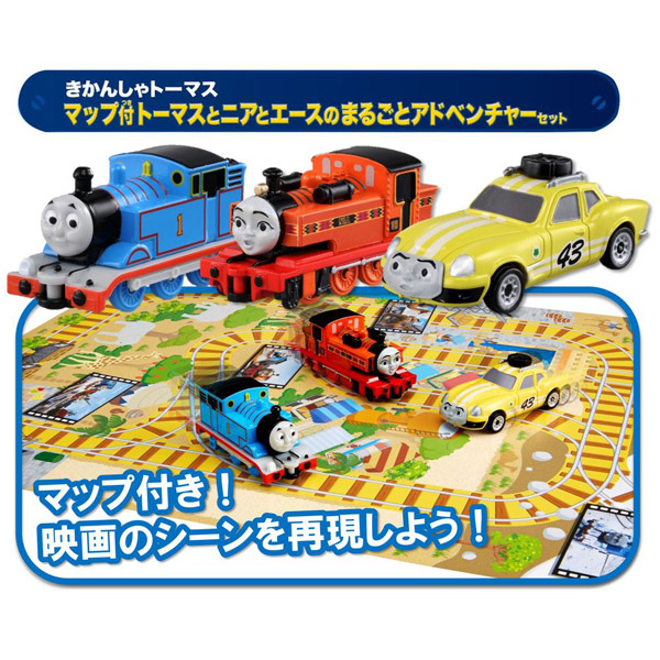 2019年映画『きかんしゃトーマス Go!Go!地球まるごとアドベンチャー』に登場するトーマス・ニア・エースと映画の画面をちりばめたオリジナルのマップがセットになって新登場!
