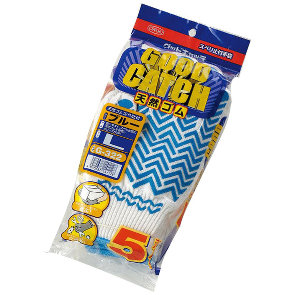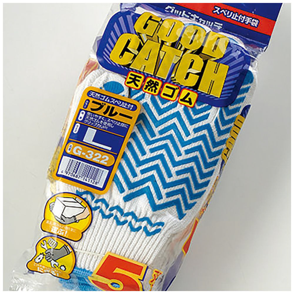 グッドキャッチ手袋 5組 ブルー G-322-L [Lサイズ /滑り止め付き]
