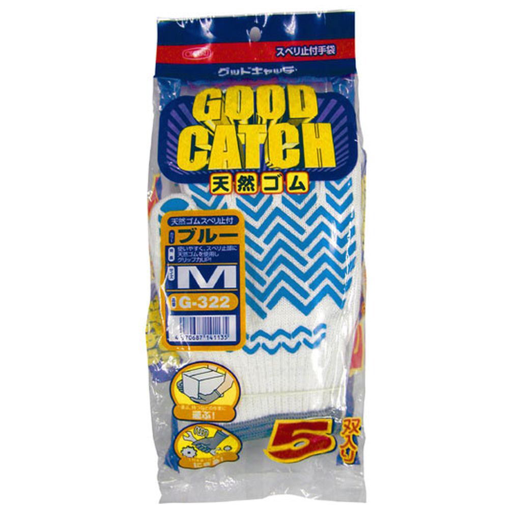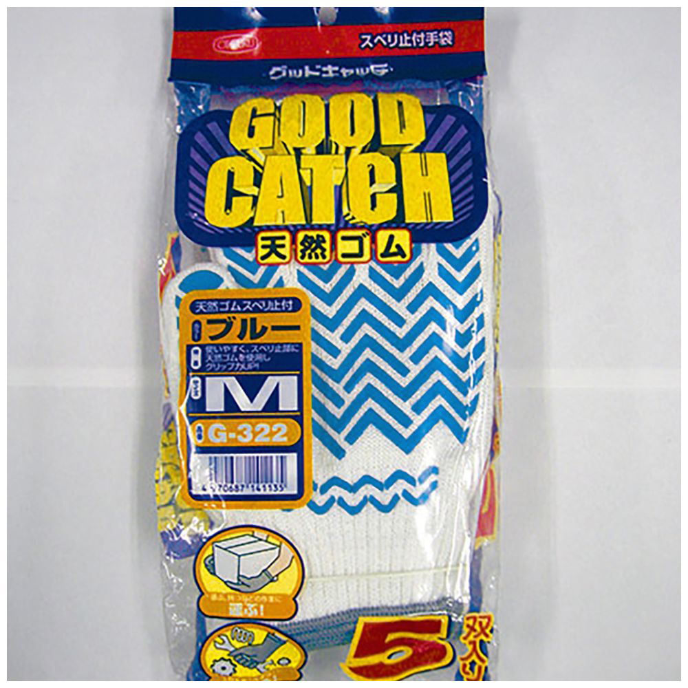 グッドキャッチ手袋 5組 ブルー G-322-M [Mサイズ /滑り止め付き]