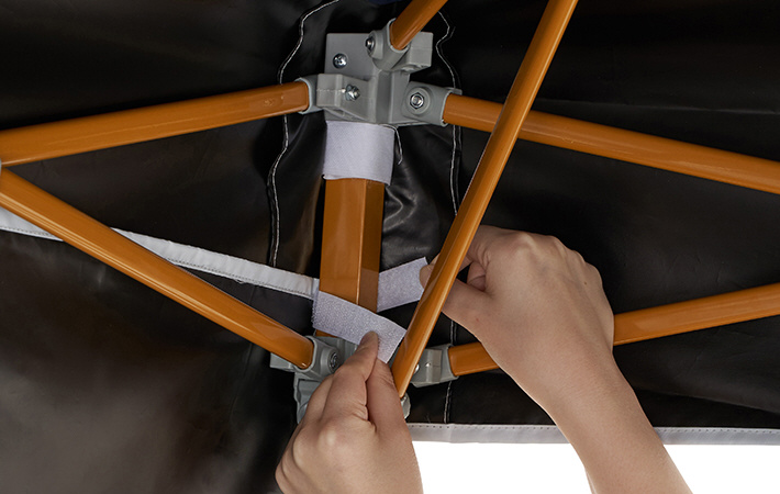 ・タープ内側には強い日差しも遮るPUブラックコーティング・UVカット率99.99%。