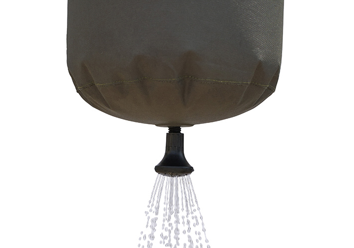 海水浴後の手・足洗いやキャンプ場でのジャグ代わりとして使える、コンパクトサイズのハンディバッグシャワーです。最大9Lの水が入り、約5分間シャワーが使用できます。また使っていない時は濡れた衣服を入れる防水バッグにも。薄い素材でできているので保管も省スペースです。