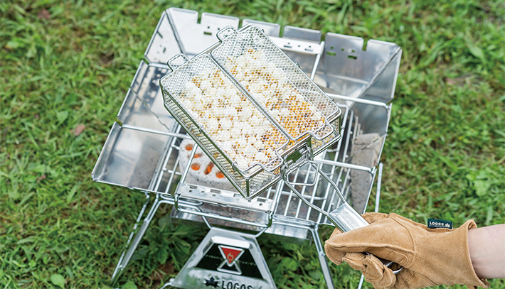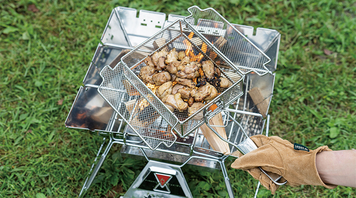 ・本格炭火モモ焼きを手軽に楽しめます・ポップコーンやぎんなん、コーヒー豆なども楽しめます・折り畳み式ハンドルで収納もコンパクトに