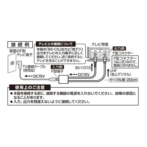 | 仕様2 | IN:F型端子 OUT:F型コネクター |
