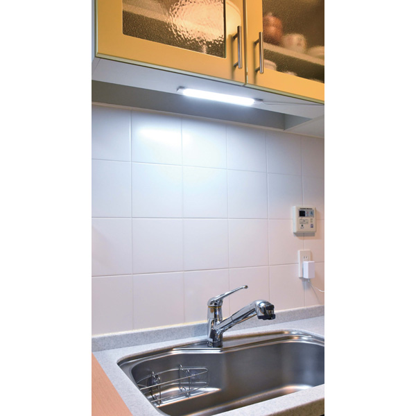●非接触スイッチに手をサッとかざすだけで電源をON/OFF、手をかざし続けると最大(100%)〜最小(約10%)の間で無段階調光できる。