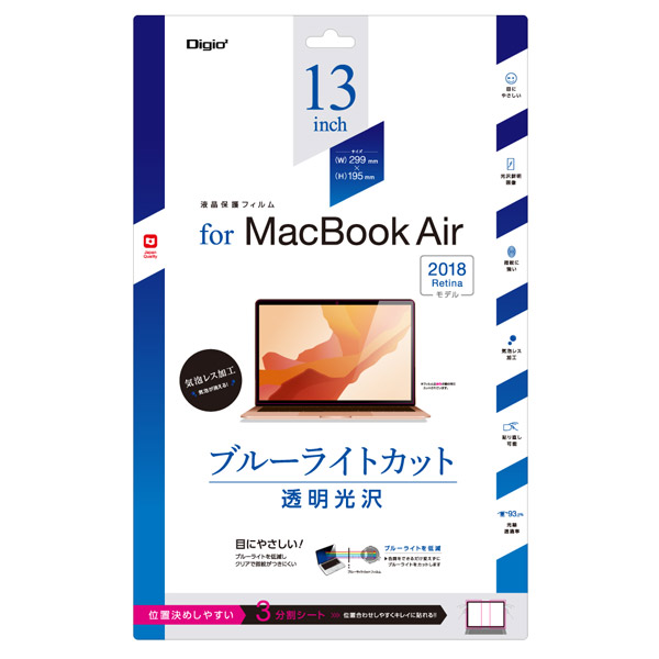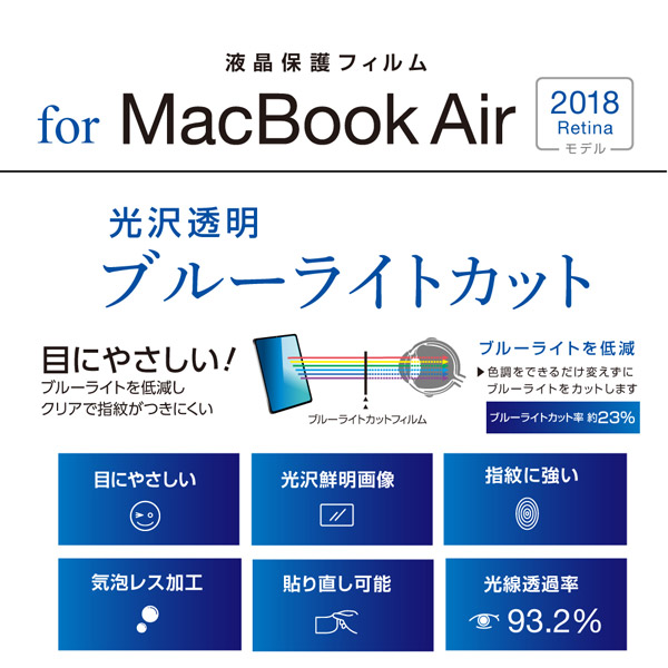 MacBookAir13inch(2018Retina)用液晶保護フィルム ブルーライトカット光沢透明 SFMBA1301FLKBC