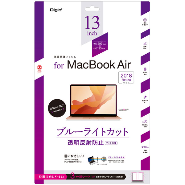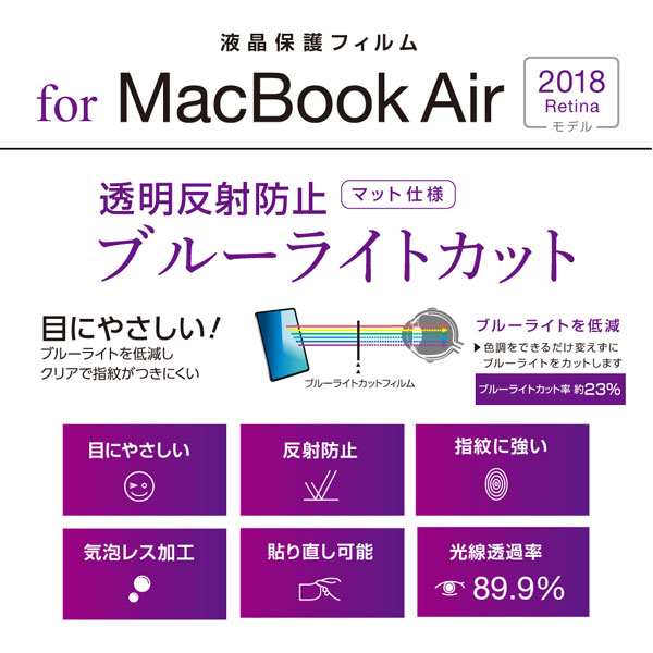 MacBookAir13inch(2018Retina)用液晶保護フィルム ブルーライトカット透明反射防止 SFMBA1301FLGBC