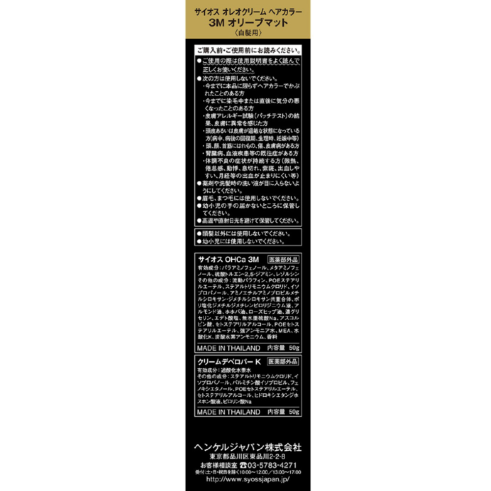 | 型番 | サイオスオレオクリームヘアカラー3M |