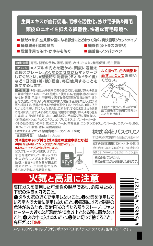 | 商品名 | インセント 薬用育毛トニック 微香性180g |