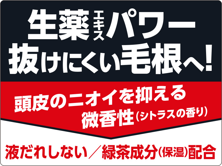 生薬エキスが血行促進、毛根を活性化、抜け毛予防&育毛。頭皮のニオイを抑える微香性、快適な育毛環境へ■液だれせず、生え際や気になる部分にとどまって効く、爽快直噴ジェットタイプ■緑茶成分(保湿成分)配合■殺菌作用でフケふけ・かゆみを防ぐ■微香性(シトラスの香り)■無着色・ノンパラベン