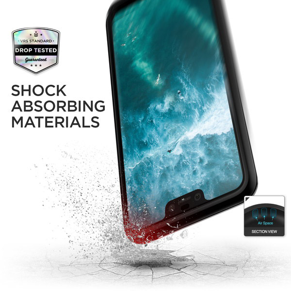 製品にスマートフォンを装着した状態で、あらゆる角度から落下させるメーカー独自の耐衝撃テストをパスした、衝撃に強いケースです。本体の外観を損なわないよう、薄型のTPU素材を使用したケースです。ケース4角のインナー素材には落下の衝撃を緩和させるために、スマホ本体とインナー素材の間に空間を設けたエアーポケット加工を施しております。
