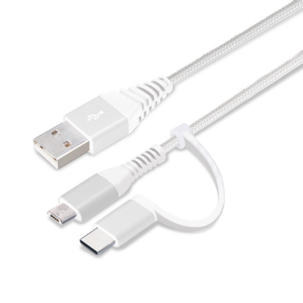 変換コネクタ付き 2in1 USBタフケーブル(Type-Cµ USB) 15cm ホワイト&シルバー PG-CMC01M02WH