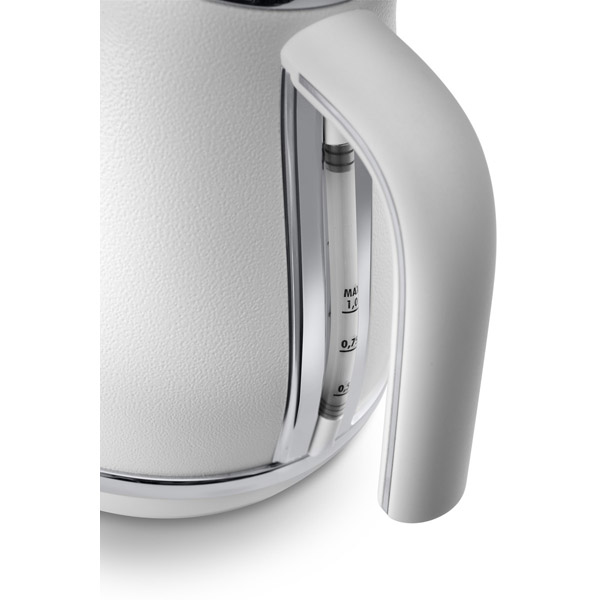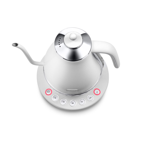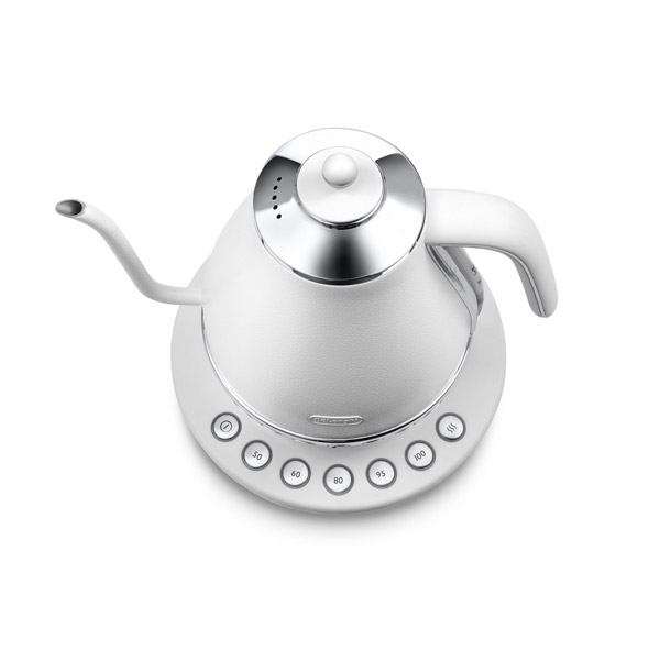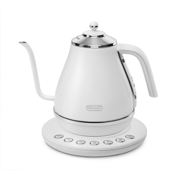 デロンギらしい洗練されたデザインと、高級感のある特徴的な凹凸塗装。使い心地とデザインのバランスがとれた温度設定機能付き電気カフェケトルです。
