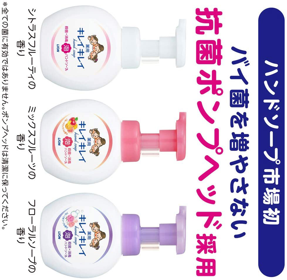きちんと殺菌し、バイ菌から手肌を守るキレイキレイ薬用泡ハンドソープ●片手で持ててつめかえやすく、たっぷり使える。●きちんと殺菌し、バイ菌から手肌を守ります。●きめ細かな泡が汚れをすみずみまでキャッチし、しっかりと落とします。●すばやい泡切れ、ぬるつかない洗い上がり。【手に香りが残りにくいシトラスフルーティの香り】