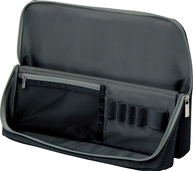 マグネットでピタッと安定。あっと言う間にすっきりスタンド!自立補助フラップで後ろに倒れにくい。A4ノート、12インチタブレット、USBケーブル、などを収納。ちょい置きトレーには、スマートフォンを立て掛けることができる。スマートフォン周辺機器を、スッキリ持ち運べます。フリーアドレスにも最適。