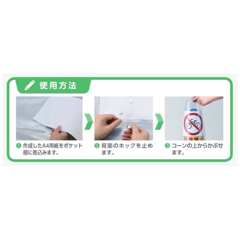 オリジナル表示物を自由に差替えられるコーンカバーです。